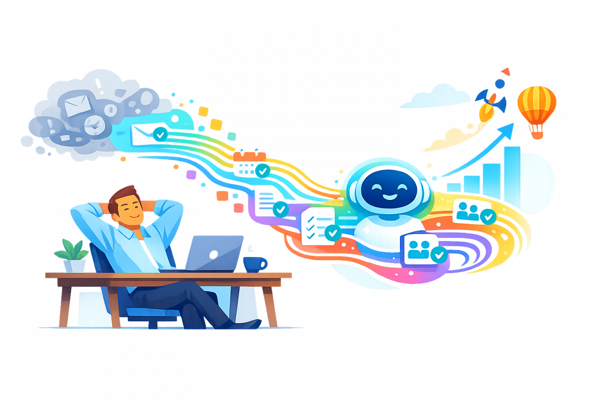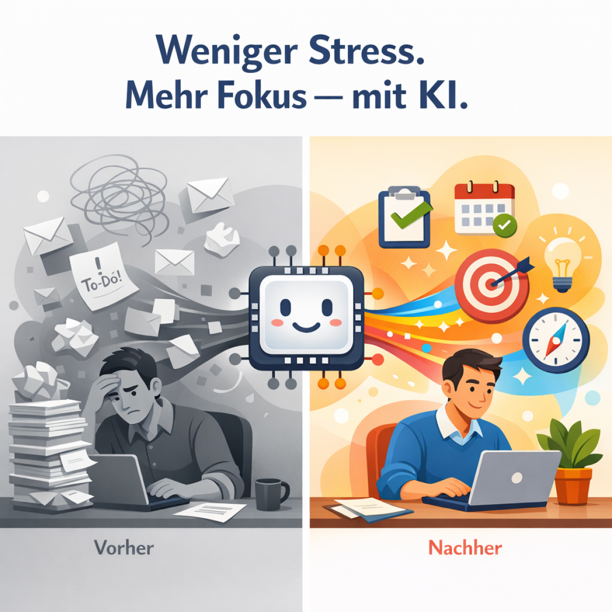 Erleben Sie, wie sich der Druck von Ihrer Schultern löst. Wir von SocialMediaKI reduzieren nicht nur den stressigen Büroalltag, sondern bringen auch ein Gefühl der Gelassenheit in Ihr Unternehmen. Stelle Sie sich vor, wie Sie sich wieder auf das Wesentliche konzentrieren können, während die KI Routineaufgaben effizient übernimmt. Spüren SIe die Freiheit, die entsteht, wenn Zeit für kreative Ideen und strategische Entscheidungen bleibt. Mit jedem Klick und jeder Automatisierung schaffen Sie Raum für Inspiration und Innovation – und das stressfrei!
